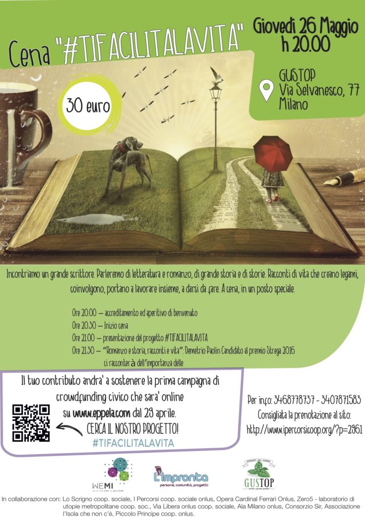 Dal 29 aprile è partita la raccolta fondi #TIFACILITALAVITA, promossa da Eureka! all’interno di un progetto più ampio con capofila L’Impronta Onlus per finanziare la ristrutturazione di due luoghi di aggregazione sociale. In particolare Eureka! partecipa alla ristrutturazione dello spazio di corso San Gottardo 41, l’altro è in piazzetta Capuana.