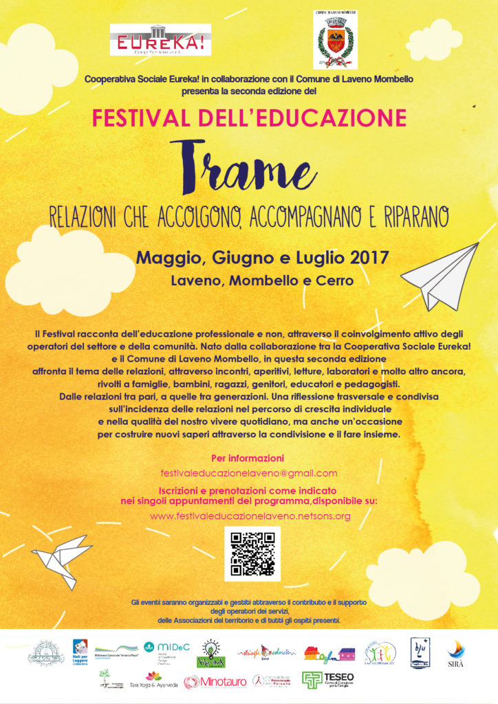 Ritorna quest’anno il Festiva dell’Educazione con una nuova veste. Nato dalla collaborazione tra la Cooperativa Sociale Eureka! e il Comune di Laveno Mombello e giunto alla sua seconda edizione, il festival propone un ricco programma di appuntamenti che si snoderà nei mesi di Maggio, Giugno e Luglio 2017.