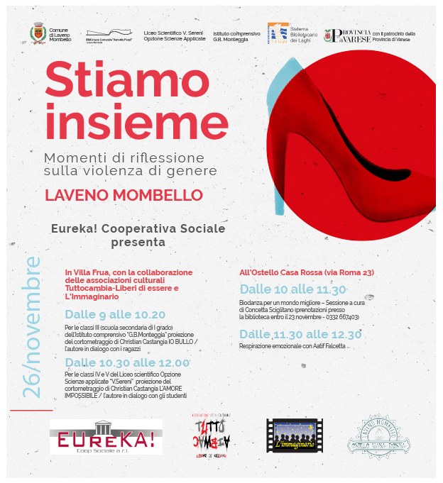 Il 25 e 26 Novembre 2016, a Laveno Mombello, in occasione della Giornata Internazionale Contro la Violenza sulle Donne, Eureka! partecipa all’iniziativa “Stiamo Insieme – Momenti di riflessione sulla violenza di genere”.